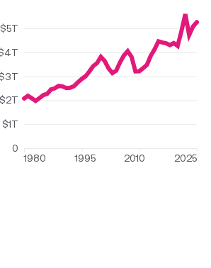 Gross domestic product (GDP) reached $23.3 trillion (or an average of $68,513 per person) in 2024, up 2.8% from the previous year.