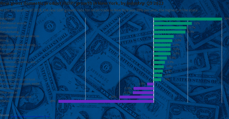 Real gross domestic product by industry in New York, chained 2017 dollars
