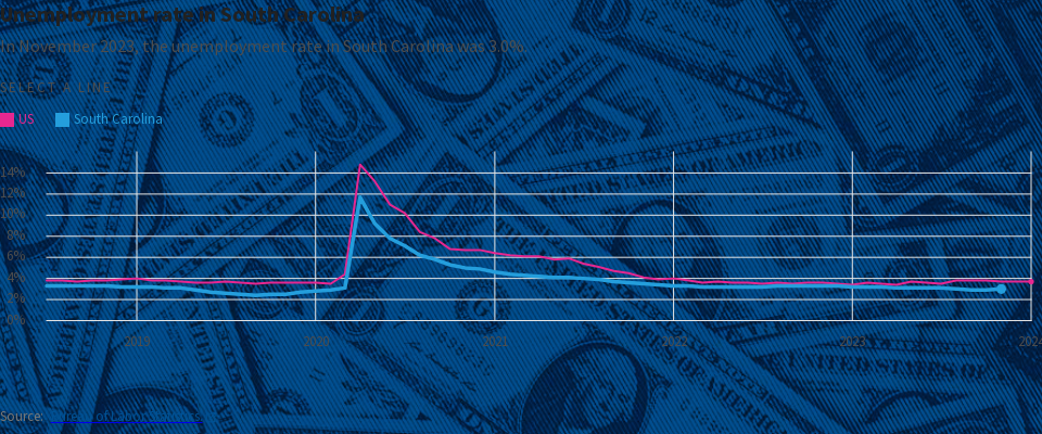 In 2024, South Carolina ranked 45th in state GDP per person.